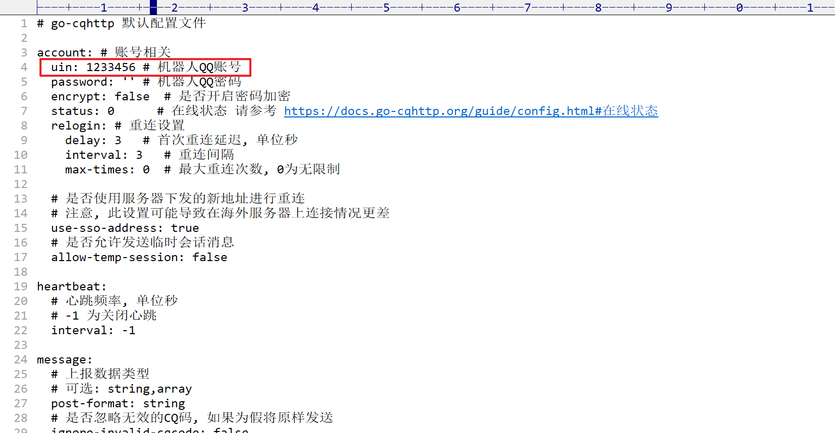 文件,并在第 4 行填上自己的机器人 QQ 号,密码不用填,我们进行扫码登录。