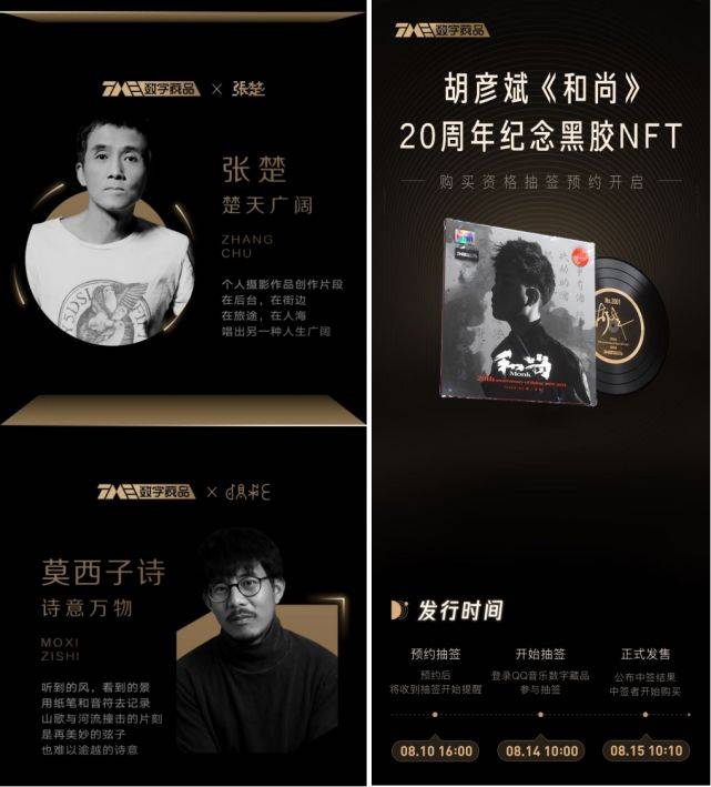 例如腾讯音乐宣布推出《音乐人不止音乐人》数字藏品系列和胡彦斌《和尚》20周年纪念黑胶NFT,成为国内数字藏品领域首个音乐平台,未来或将被应用在数字专辑及限量周边产品中。