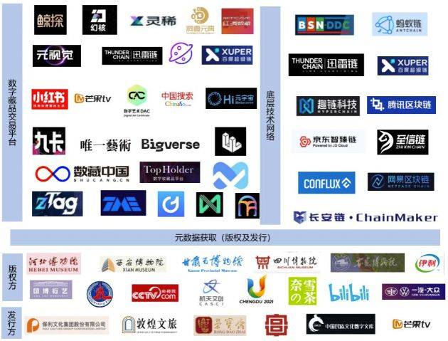 版权方主要提供数字藏品的原始IP,其主要包含特定团体或机构,电影、电视、音乐、动漫等厂商,游戏公司以及个人艺术家等。